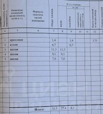 В квартире 3 раздельные комнаты - 11,3/9,1/7 м2, кухня - 6,7 м2, прихожая - 1,4 м2. Так же есть терраса с двумя кладовками.