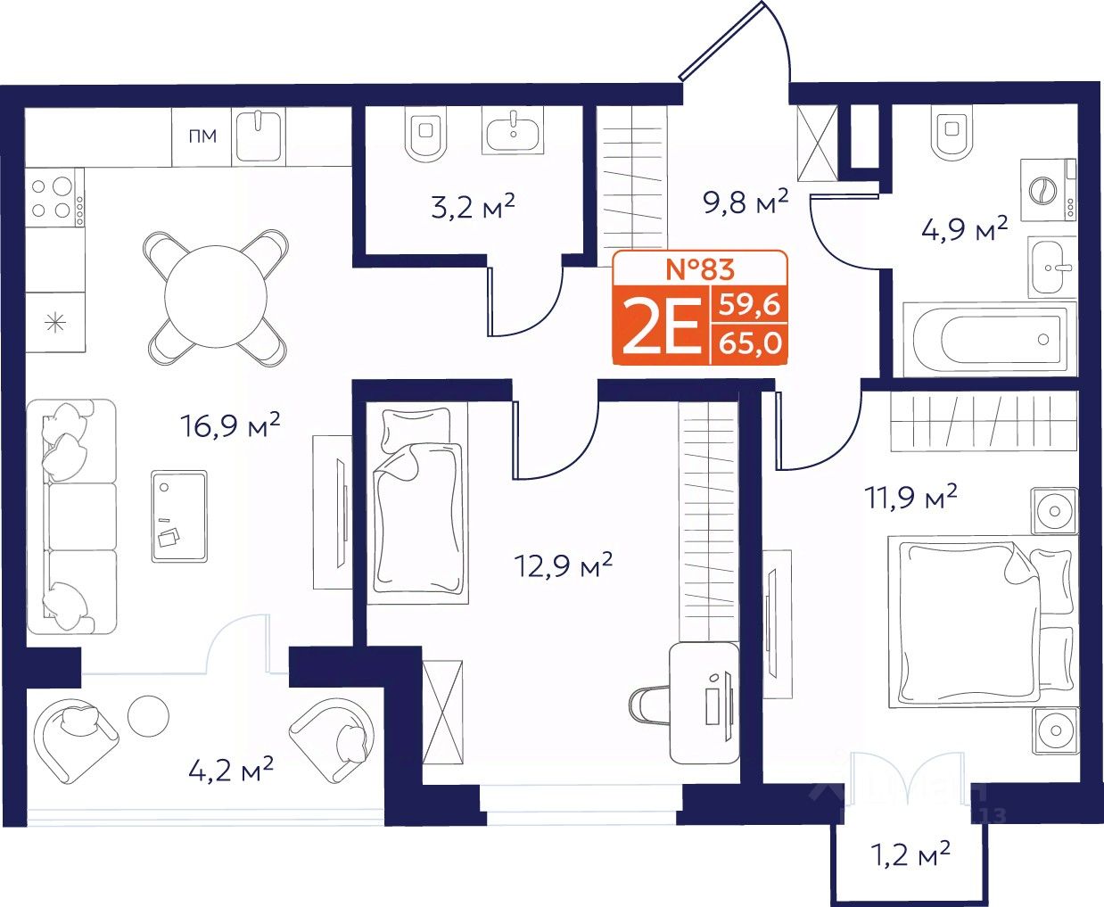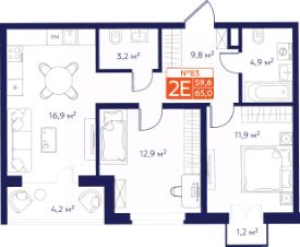 Продается 2-комнатная квартира 83 в Квартале "Новаторов" комфорт-класса.