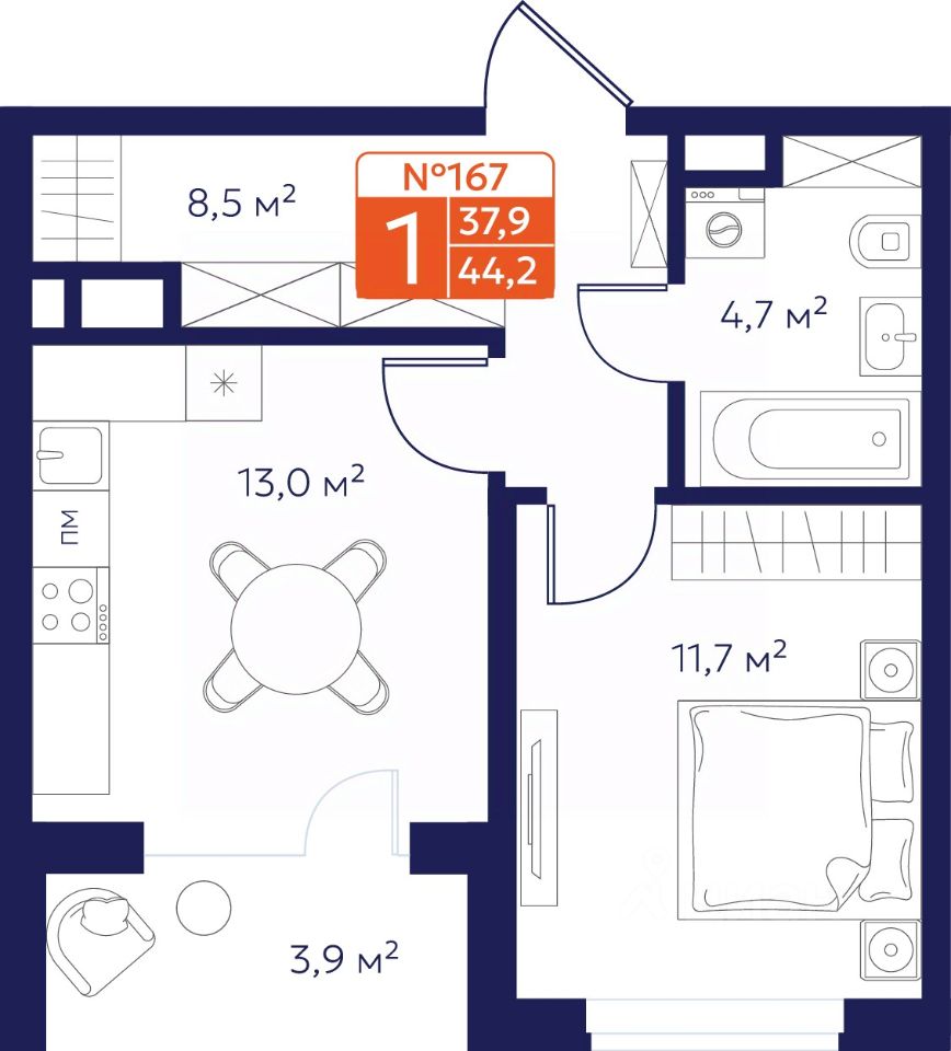 Продается 1-комнатная квартира 167 в Квартале "Новаторов" комфорт-класса.