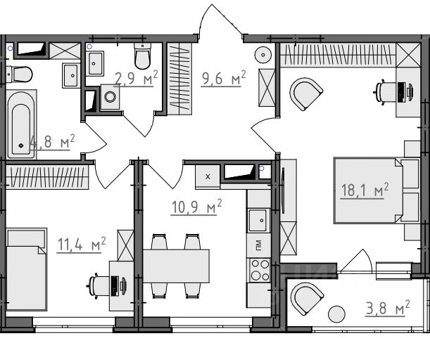 Квартиры сдаются в предчистовой отделке: чистовая стяжка, гипсовая штукатурка в комнатах и коридоре, электроразводка по квартире. Обязательное остекление всех лоджий и установка качественных входных дверей, не требующих замены.
