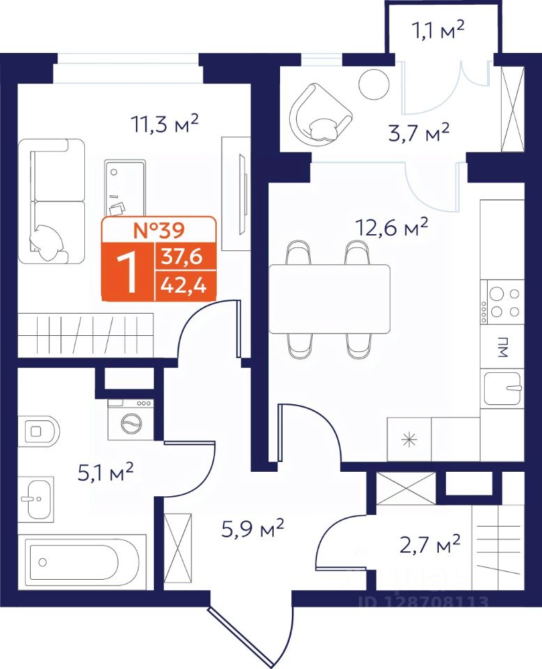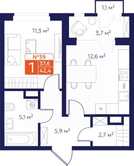 Продается 1-комнатная квартира 39 в Квартале "Новаторов" комфорт-класса.