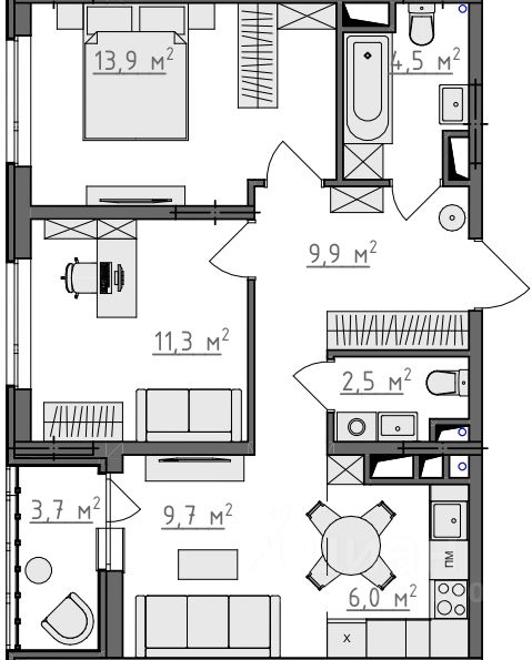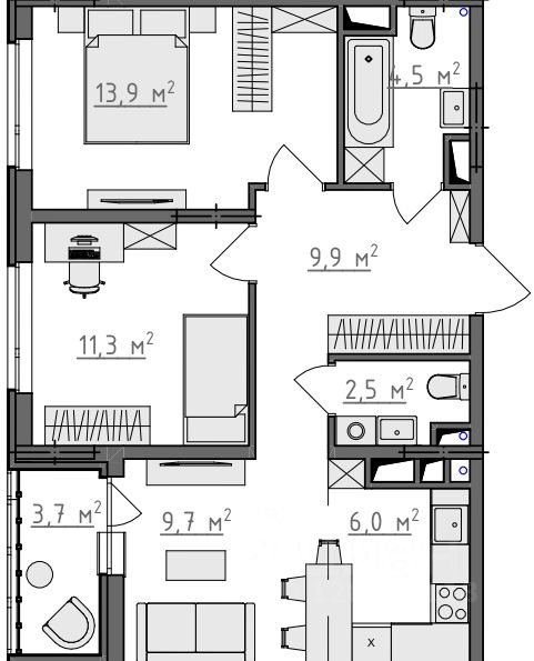 Квартиры сдаются в предчистовой отделке: чистовая стяжка, гипсовая штукатурка в комнатах и коридоре, электроразводка по квартире. Обязательное остекление всех лоджий и установка качественных входных дверей, не требующих замены.