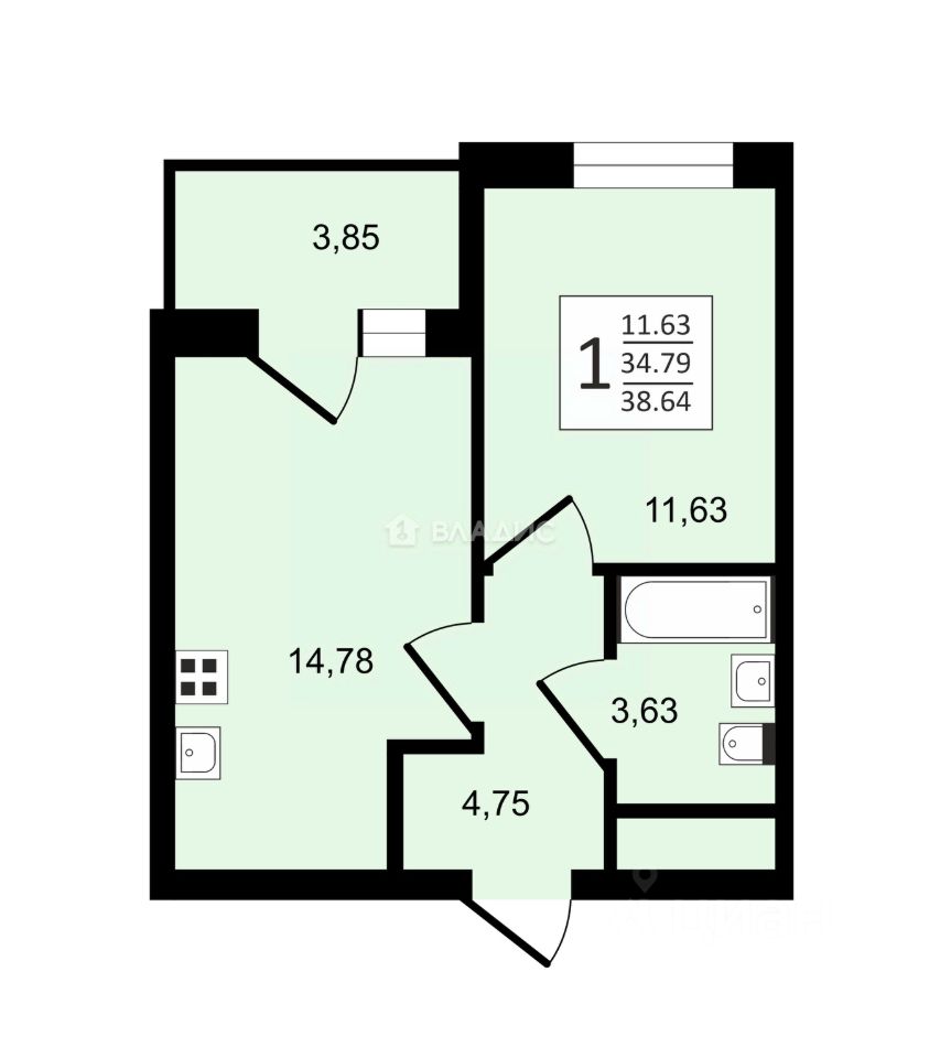В квартире просторная кухня площадью 14,78 м², жилая комната — 11,63 м². Окна выходят на улицу и во двор, что позволяет наслаждаться видами и обеспечивает хорошую освещённость. Есть лоджия(веранда), где можно организовать место для отдыха или работы. Квартира не угловая, с изолированными комнатами, без отделки.