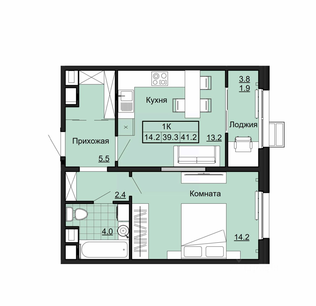 14,2 м²