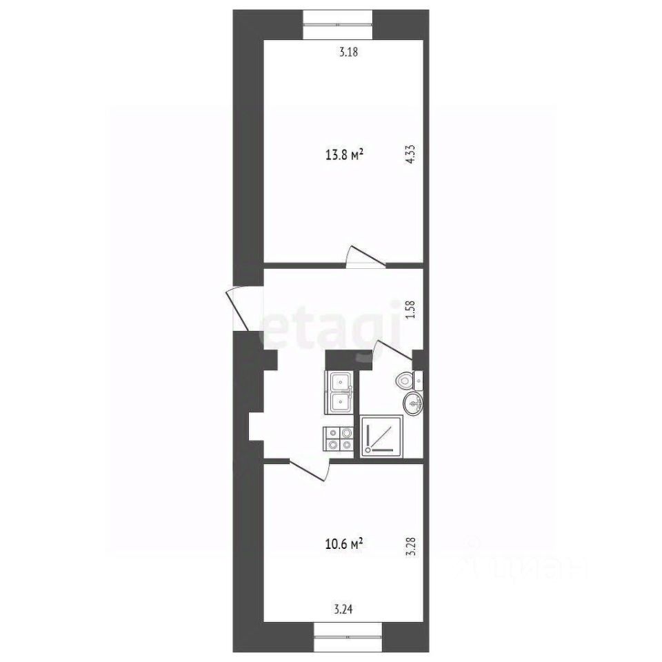 Квартира расположена на 1 этаже двухэтажного кирпичного дома, отдельный вход с торца, по адресу: ул. Советская, 11. Общая площадь квартиры 34,9 кв.м. Полностью готова к проживанию после косметического ремонта.