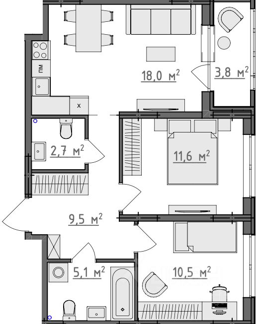 Квартиры сдаются в предчистовой отделке: чистовая стяжка, гипсовая штукатурка в комнатах и коридоре, электроразводка по квартире. Обязательное остекление всех лоджий и установка качественных входных дверей, не требующих замены.