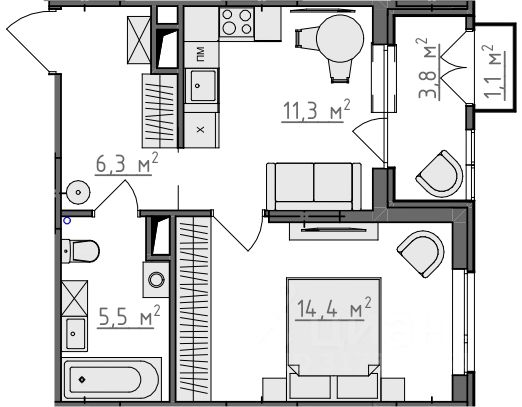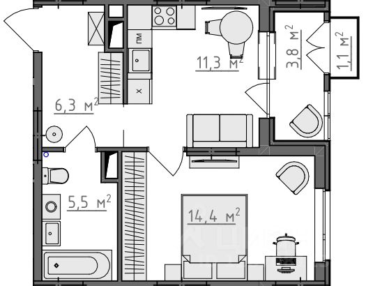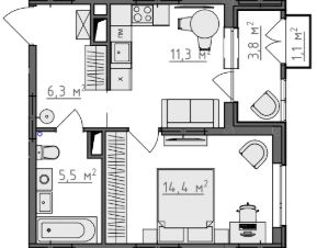 Продается 1-комнатная квартира 97 в Квартале "Новаторов" комфорт-класса.