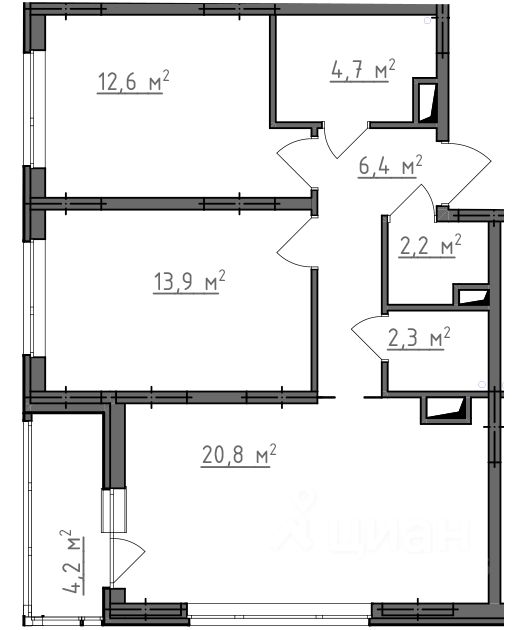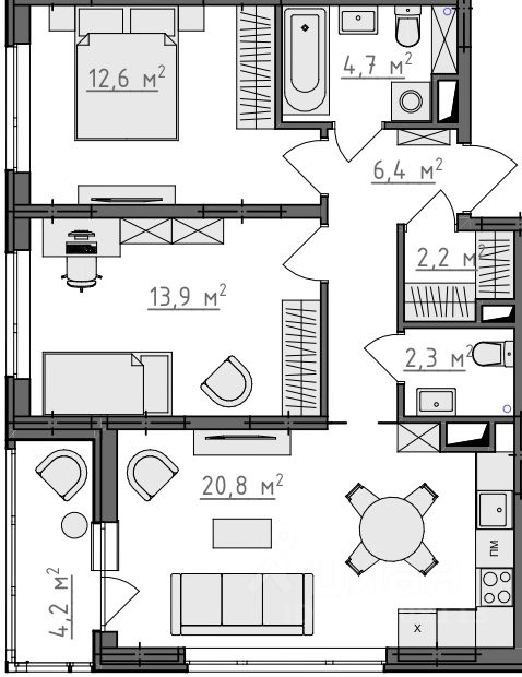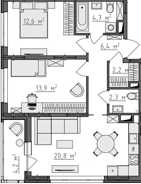 Продается 2-комнатная квартира 206 в Квартале "Новаторов" комфорт-класса.