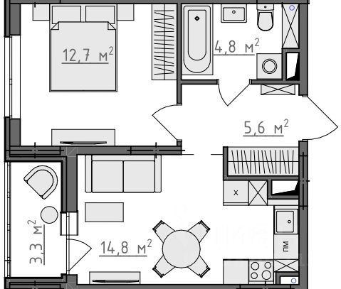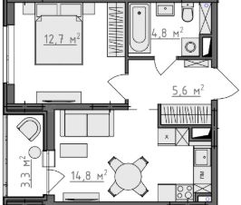 Продается 1-комнатная квартира 282 в Квартале "Новаторов" комфорт-класса.