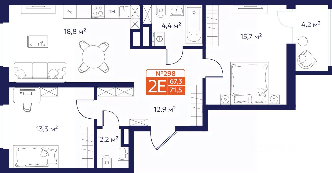 Продается 2-комнатная квартира 298 в Квартале "Новаторов" комфорт-класса.