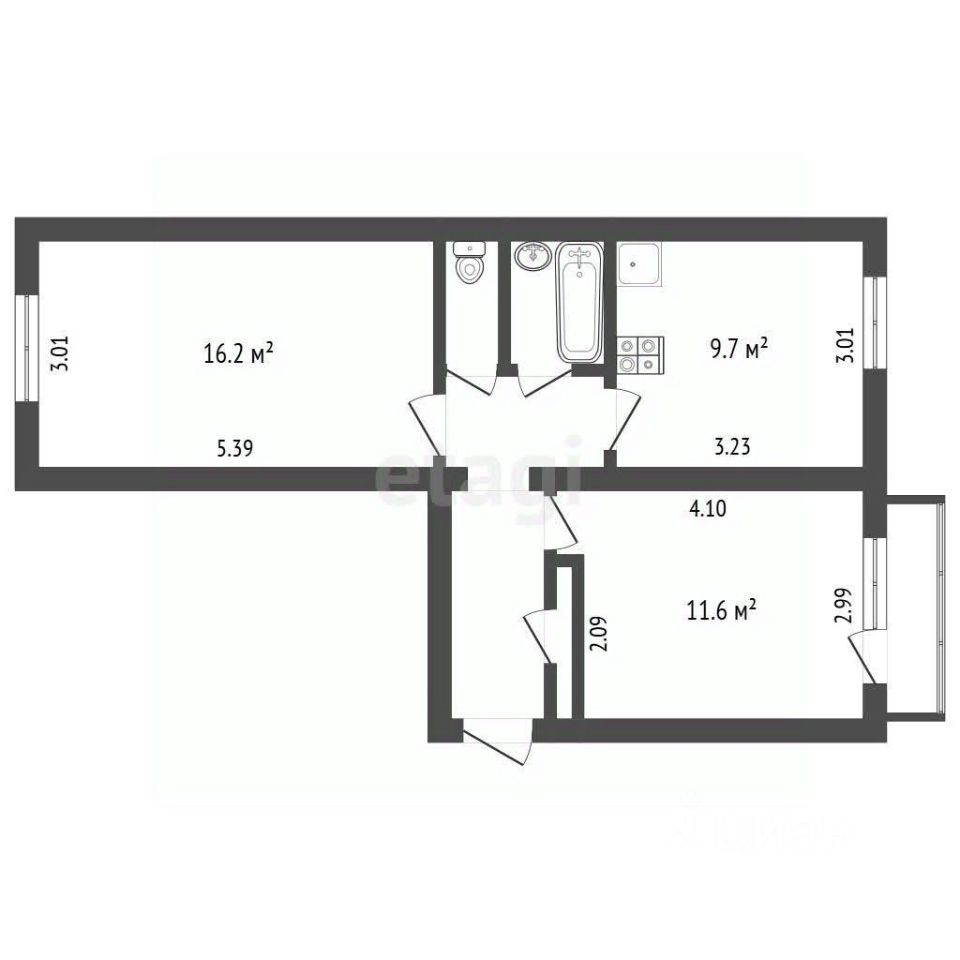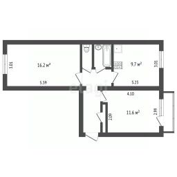 - **Жилая площадь:** 27,8 кв.м. (2 изолированные комнаты 16,2 + 11,6 кв.м.)