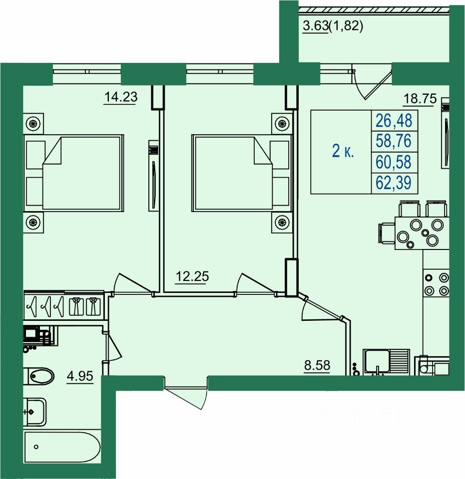 Продаётся 2-комнатная квартира в строящемся доме (Дом 5 (корпус 2)), срок сдачи: II-кв. 2027, общей площадью 60.58 кв.м., на 4 этаже. "Заречье-парк" - это современный микрорайон из двадцати четырех 5-8-этажных кирпичных домов с уникальным архитектурным исполнением, расположенный в п. Заклязьменский г. Владимира, всего в 12 минутах езды от центра г. Владимира, в экологически чистом районе города, в живописном месте на берегу старицы Клязьмы.