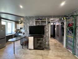 Квартира расположена на третьем этаже четырёхэтажного дома и имеет площадь 55 квадратных метров. Здесь вас ждёт просторная кухня-гостиная, две изолированные спальни и совмещённый санузел. Все помещения выполнены с современным ремонтом, а электропроводка полностью обновлена.
