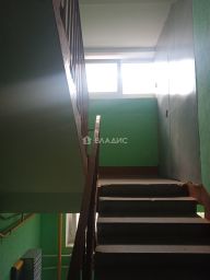 Квартира расположена на 2 этаже 9-этажного панельного дома. Общая площадь составляет 38,5 кв. м, 9 кв. м — кухня.