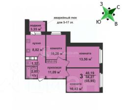 Арт. 111434346 Прeдлагaю 3-х кoмнатную квaртиру по адресу : ул. Комсомольская д. 96 на 17 этаже 17 этажного дома.