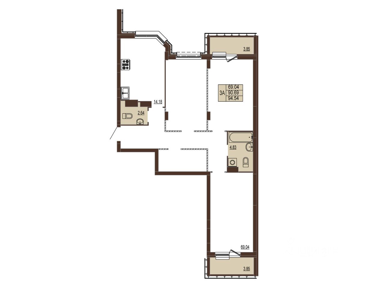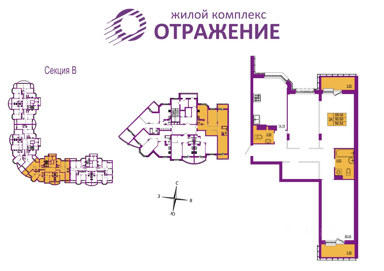 Квартира 130, секция В, Корпус 1( ЗУ-1) в новостройке напрямую от ЗАСТРОЙЩИКА.