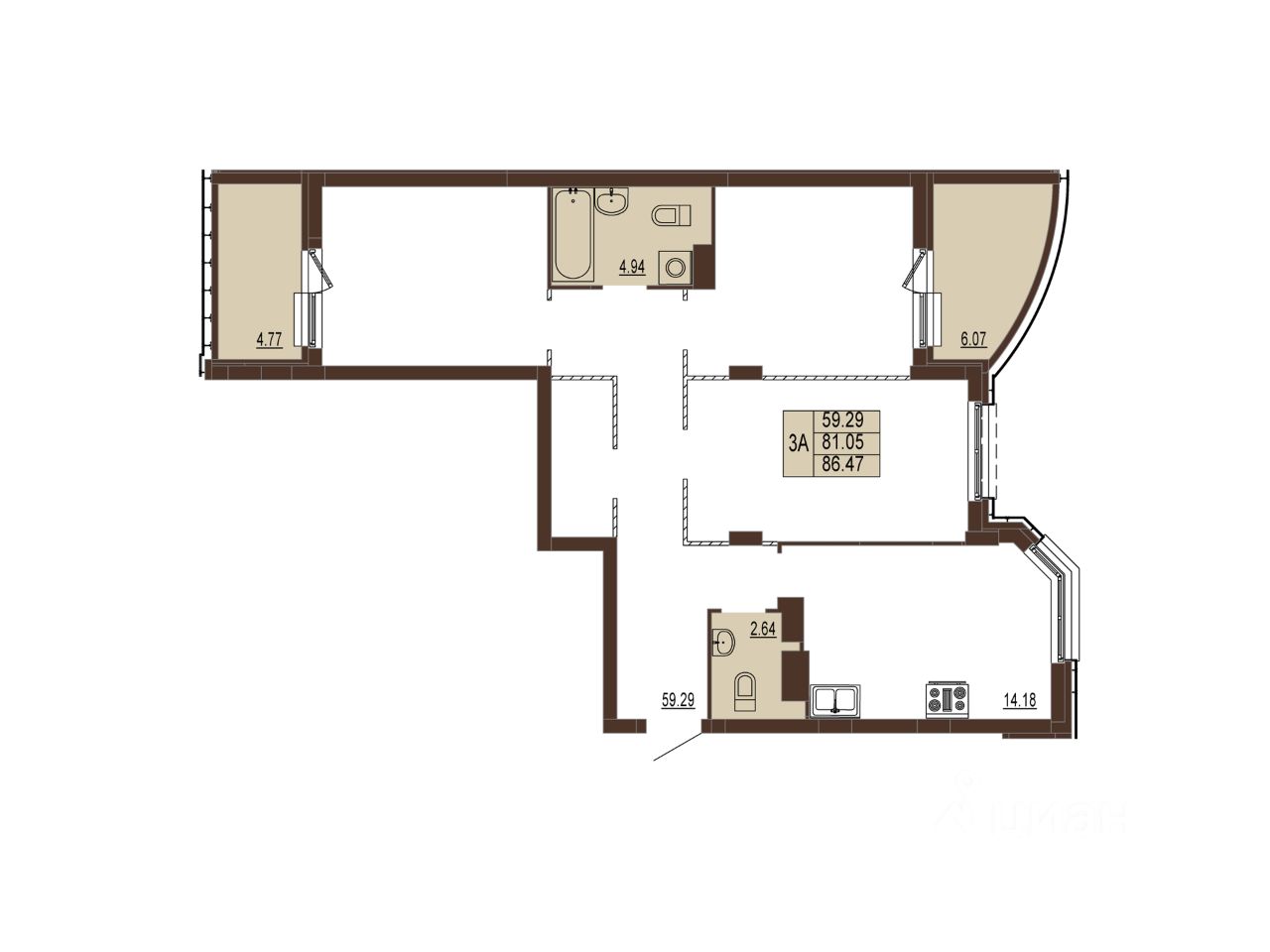 Квартира 184, секция Б, Корпус 1( ЗУ-1) в новостройке напрямую от ЗАСТРОЙЩИКА.