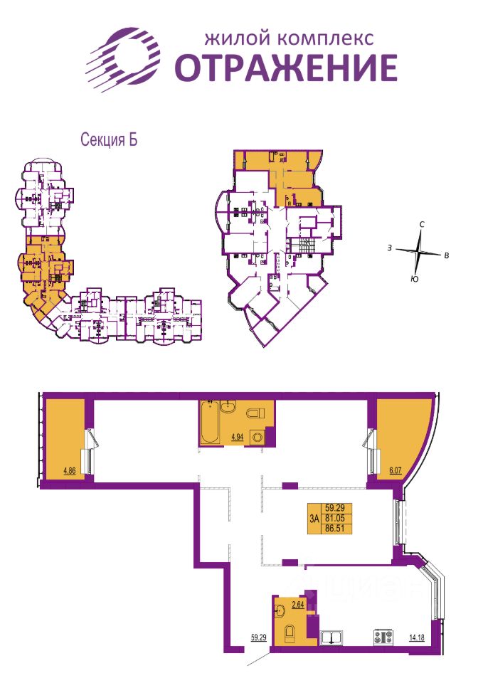 Квартира 214, секция Б, Корпус 1( ЗУ-1) в новостройке напрямую от ЗАСТРОЙЩИКА.