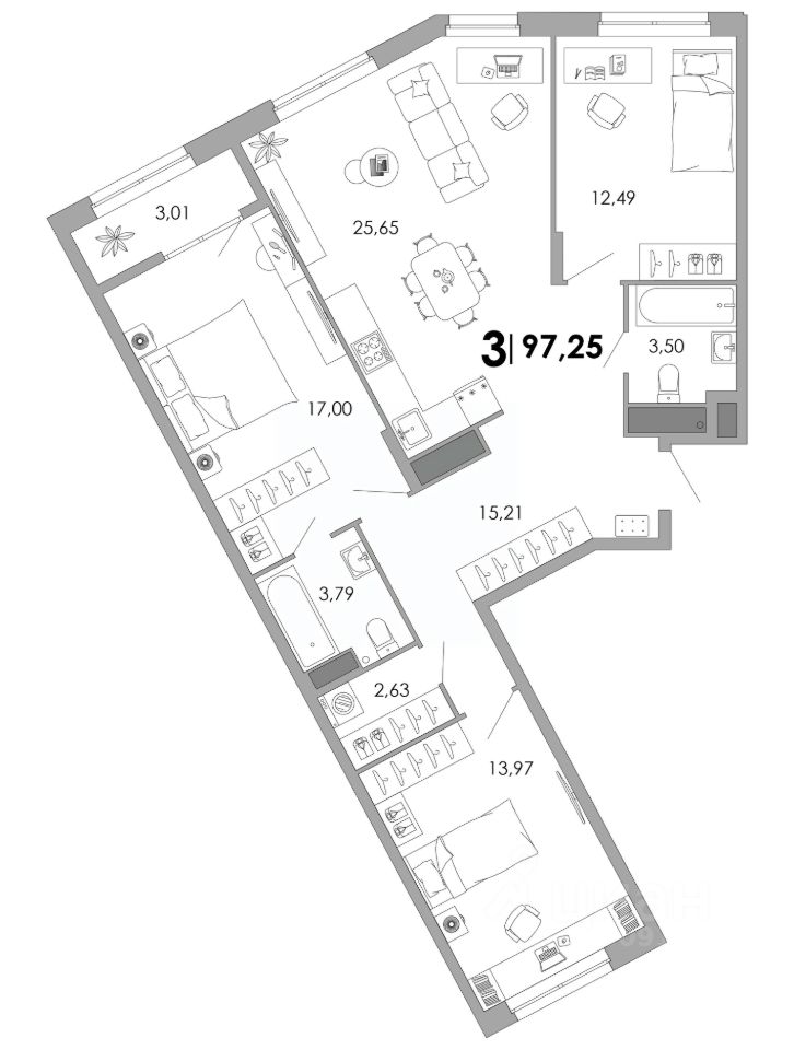 Общая площадь97,25 м²
