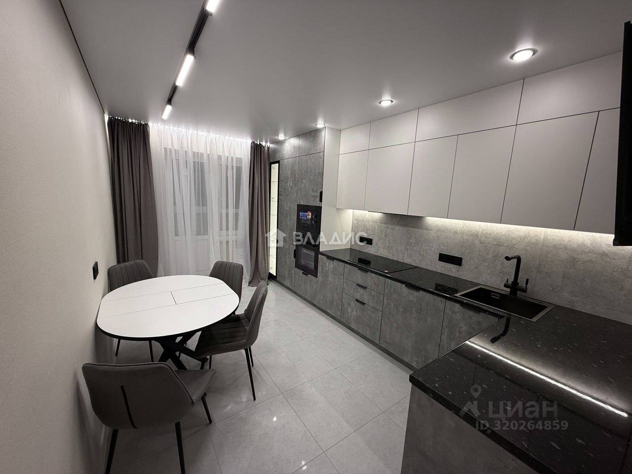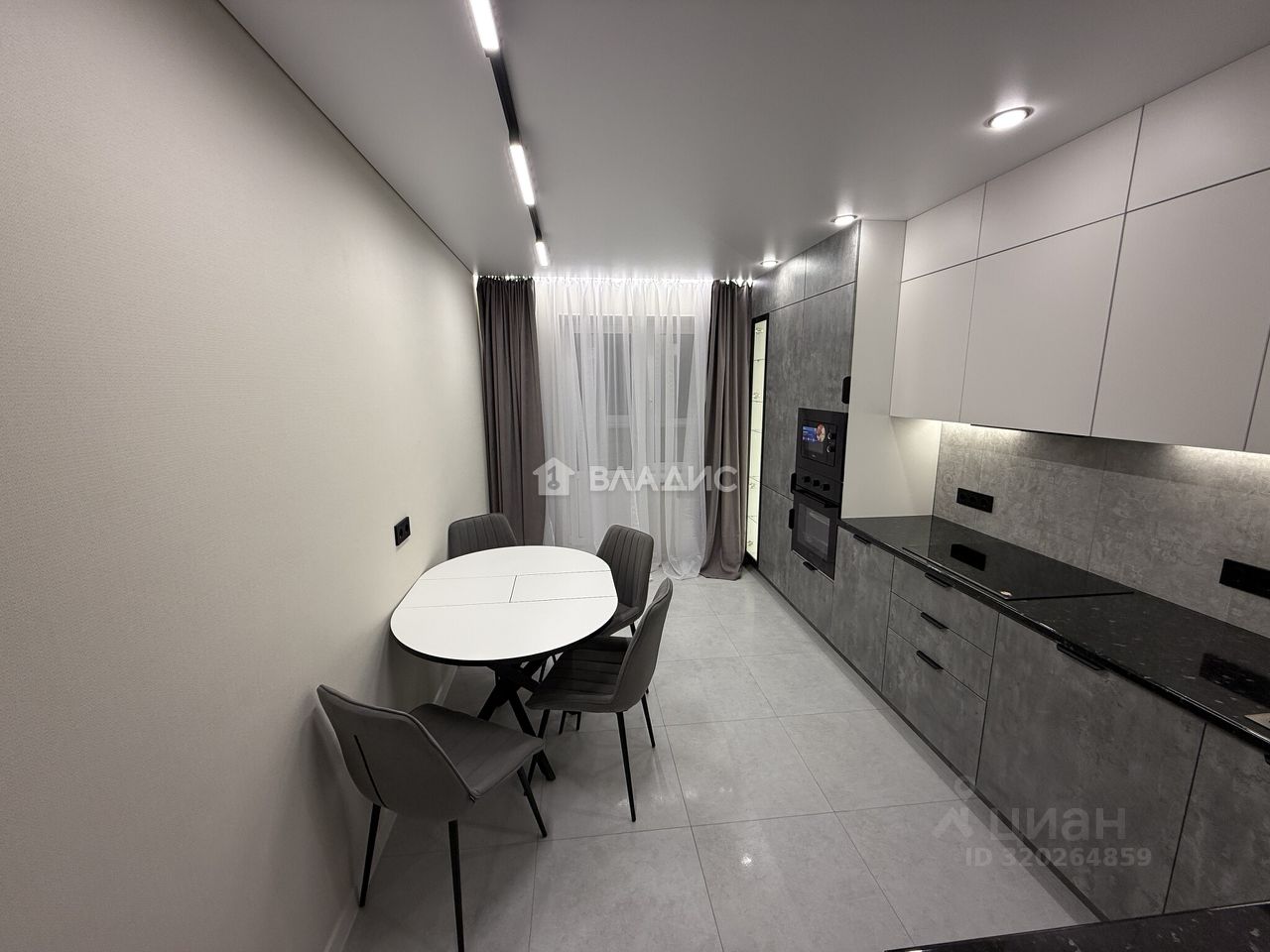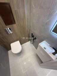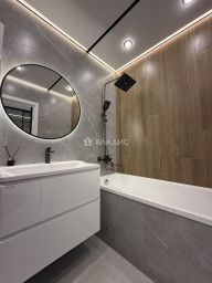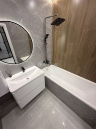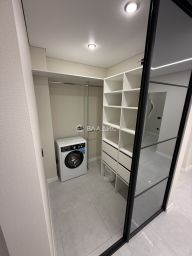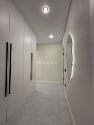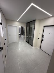 В квартире выполнен качественный современный ремонт, установлен новый кухонный гарнитур с встроенной бытовой техникой (варочная панель, духовой шкаф, посудомоечная машина, холодильник, вытяжка), санузел раздельный в современном кафеле, две гардеробные комнаты, постирочная, вся сантехника новая, материал напольного покрытия - керамогранит/ламинат, потолки - натяжные с комбинированным освещением (треки, точечный свет, диодные ленты).