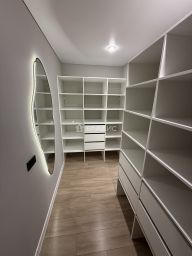 Квартира оборудована двумя гардеробными комнатами с встроенными системами хранения, есть три остекленные лоджии.