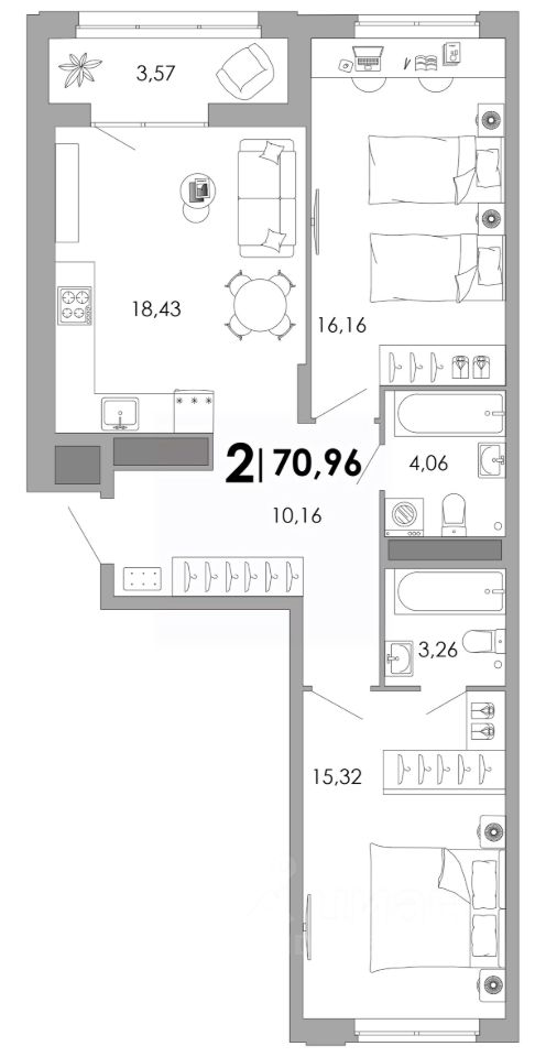 Общая площадь70,96 м²