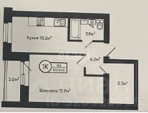 Общая площадь 41 кв. м. Самая большая из однокомнатных квартир в этом доме!