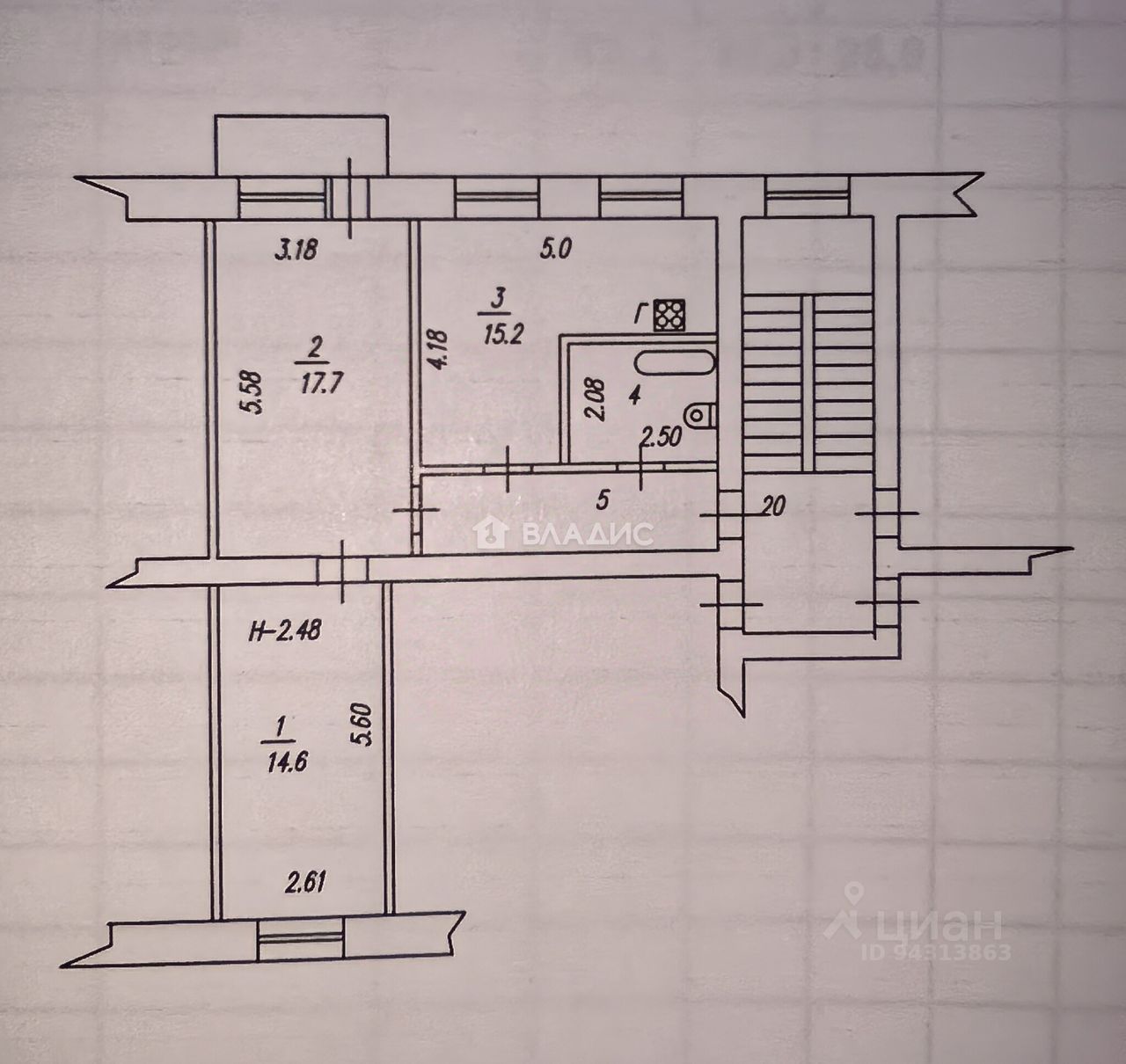 В квартире сделан косметический ремонт, высота потолков составляет 2,5 метра. Жилая площадь — 32,3 кв. м, кухня — 15,2 кв. м. Две комнаты с площадью 17,7 и 14,6 кв. м соответственно, окна выходят на улицу и во двор. Есть балкон. Квартира не угловая, оборудована индивидуальным котлом отопления, что позволяет эффективно контролировать расходы на отопление.