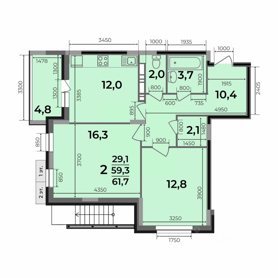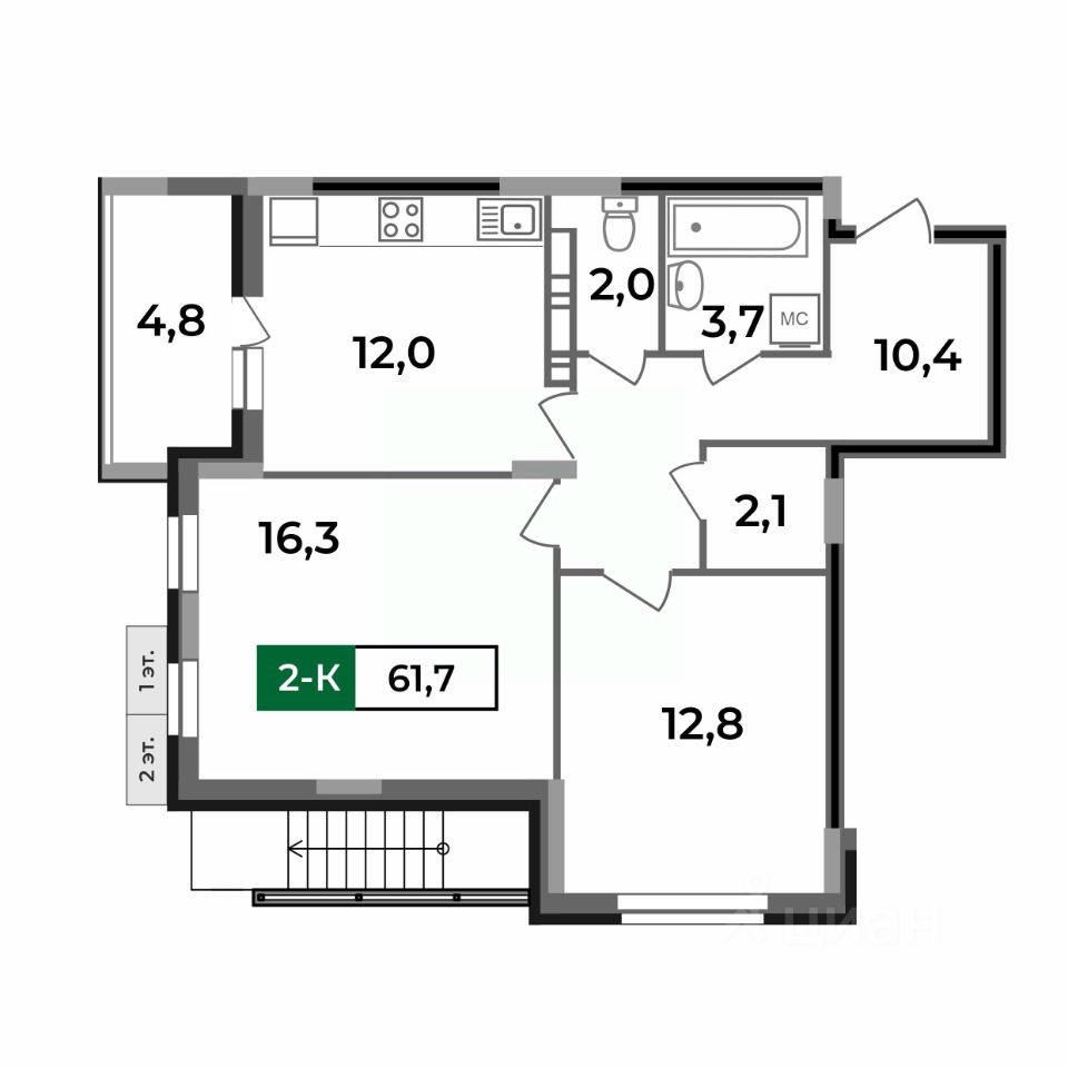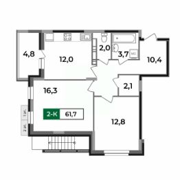 2-комн.квартира площадью 61,7 кв.м с отделкой WHITE BOX в ЖК Маршал (г. Ковров, ул. Еловая, 82). Семейная ипотека. Рассрочка. Трейд-ин.