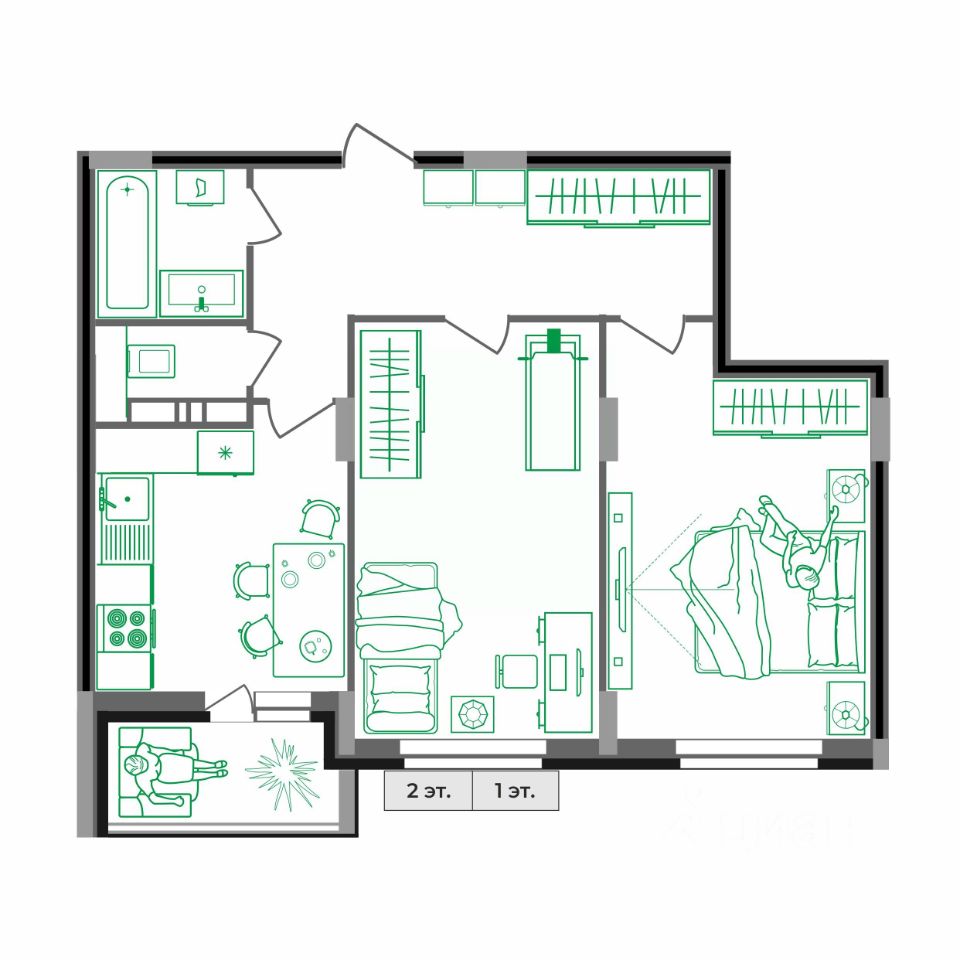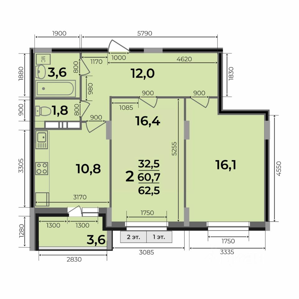 2-комн.квартира площадью 62,5 кв.м с отделкой WHITE BOX в ЖК Маршал (г. Ковров, ул. Еловая, 82). Семейная ипотека. Рассрочка. Трейд-ин.