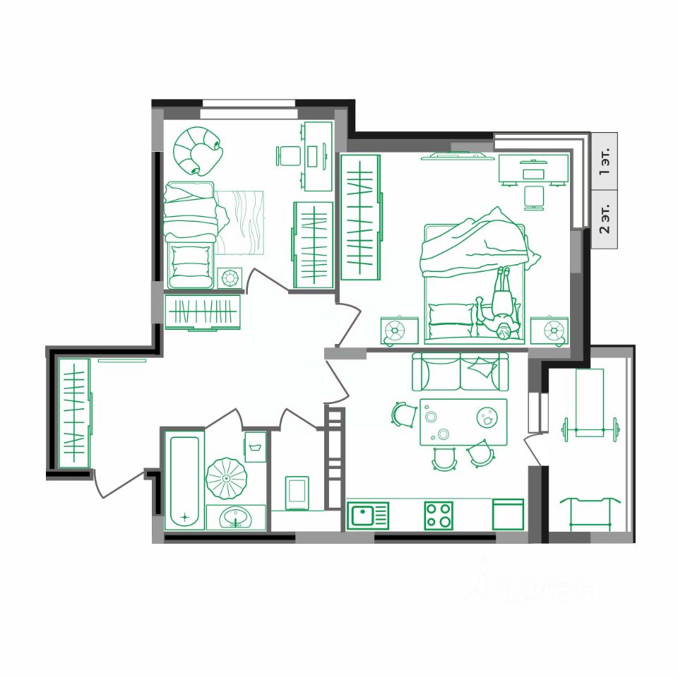 — окна квартиры выходят на 2 стороны
