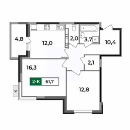 2-комн.квартира площадью 61,7 кв.м с отделкой WHITE BOX в ЖК Маршал (г. Ковров, ул. Еловая, 82). Семейная ипотека. Рассрочка. Трейд-ин.