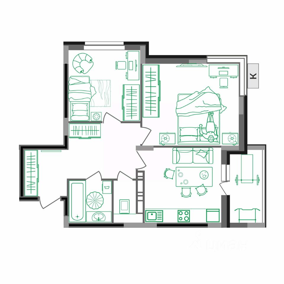 2-комн.квартира площадью 58,8 кв.м с отделкой WHITE BOX в ЖК Маршал (г. Ковров, ул. Еловая, 82). Семейная ипотека. Рассрочка. Трейд-ин.