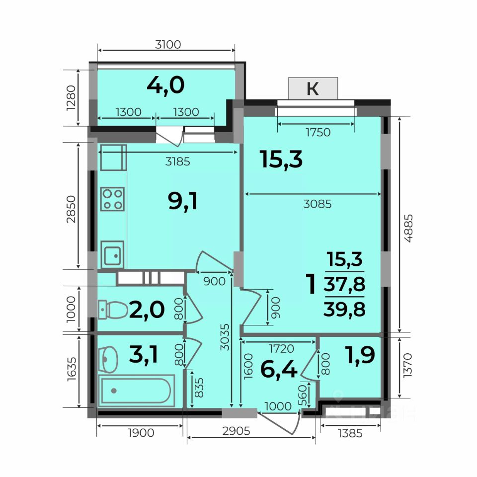 — кухня с выходом на лоджию 4 кв.м