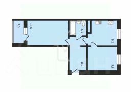 - Общая площадь: 44,5 кв. м.