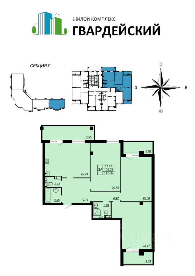 ЖК "Гвардейский" это 17 домов разной этажности, объединенных общей придомовой территорией и архитектурной композицией.