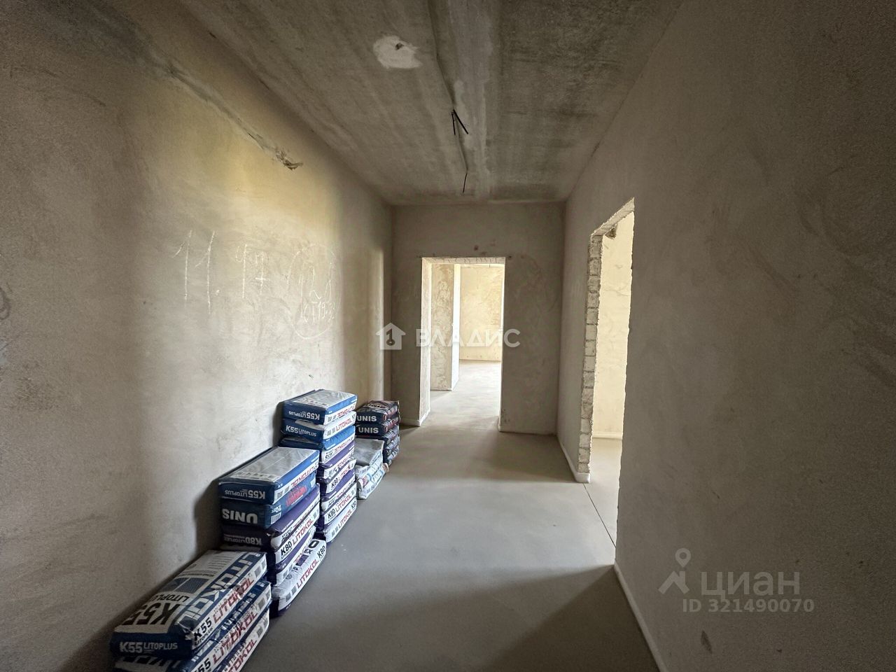 В квартире оштукатурены стены, сделан пол и электро проводка.