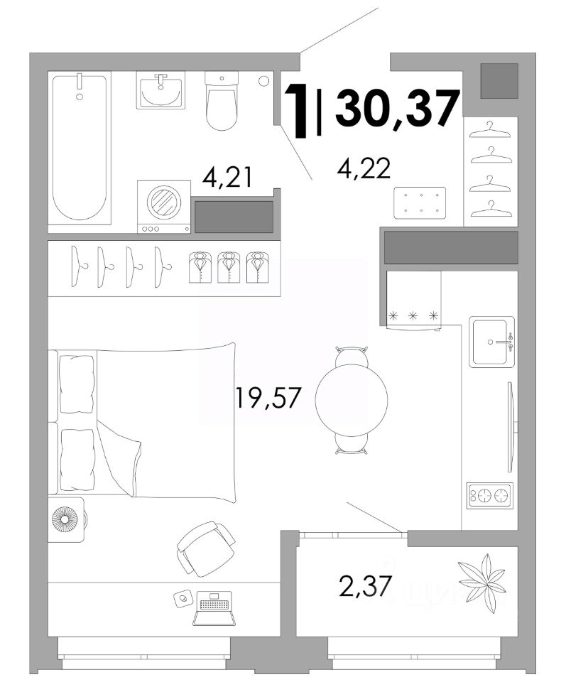 Общая площадь30,37 м²