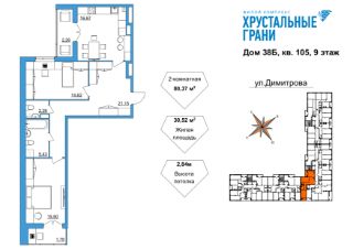Продаётся 2-комнатная квартира в строящемся доме (Дом 38Б), срок сдачи: IV-кв. 2026, общей площадью 80.37 кв.м., на 9 этаже. Новый жилой комплекс "Хрустальные грани" от застройщика ООО "СЗ Новый век" расположился по адресу: Владимирская область, город Гусь-Хрустальный, улица Димитрова, 38.