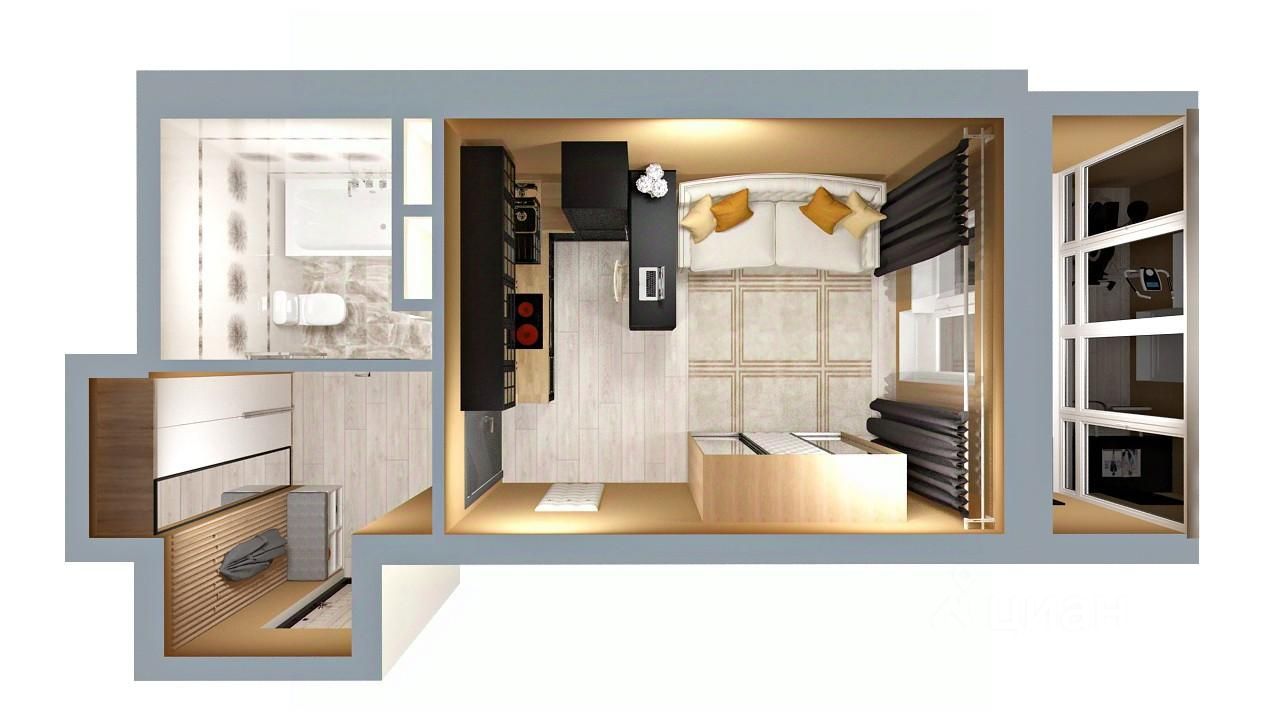 Квартира-студия (27,4 кв.м) - бюджетная квартира для сдачи в аренду или первого собственного жилья. Компактное планировочное решение, совмещенный санузел, просторная лоджия и жилое пространство чут более 15 кв.м.