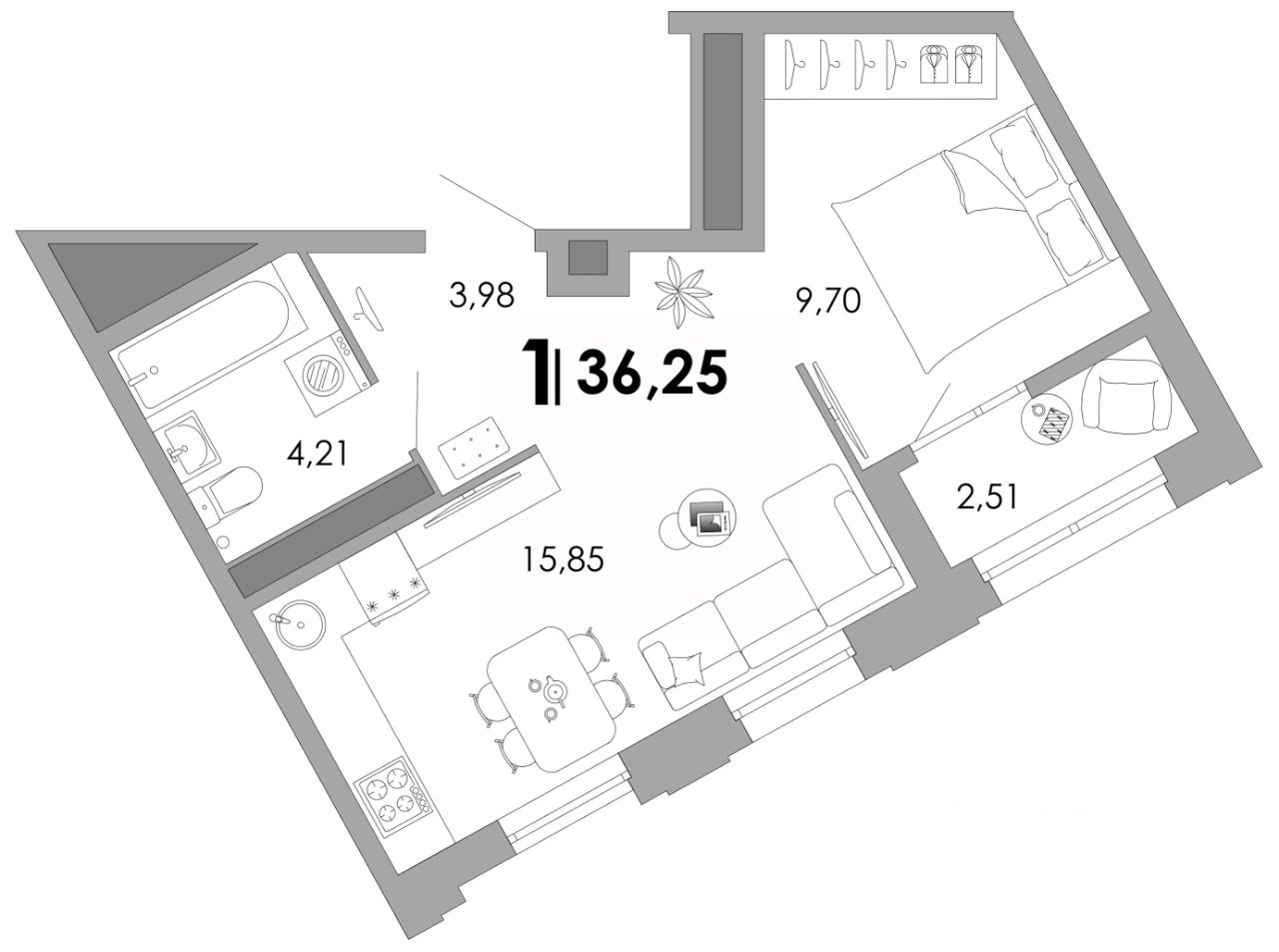 Общая площадь36,25 м²