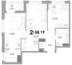 Продается 2-комн. квартира, 58,19 м²