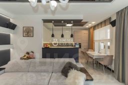 В гостиной и спальне установлены кондиционеры. По потолку квартиры выполнена шумоизоляция. Теплый пол на кухне, балконе и ванной комнате. Установлена полная система сигнализации со всеми необходимыми датчиками. Все окна имеют два вида штор, в том числе, рулонные (европейских производителей). Квартира укомплектована техникой (smeg, bosh, liebherr, sony) и мебелью. Просторная кухня-гостиная 33 кв.м., с выходом на теплую лоджию, плюсом две комнаты, просторная прихожая.