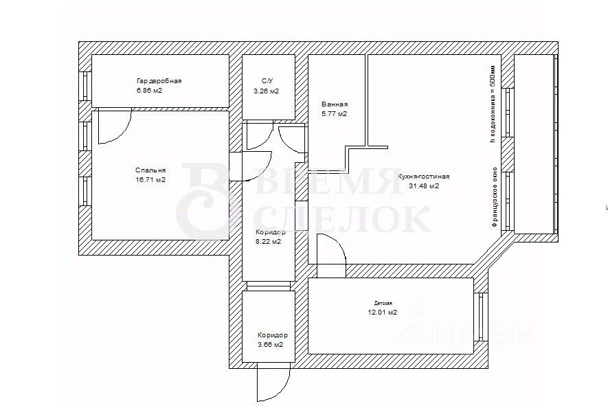 Квартира находится на первом этаже, высота, которого соответствует 2-ому этажу.