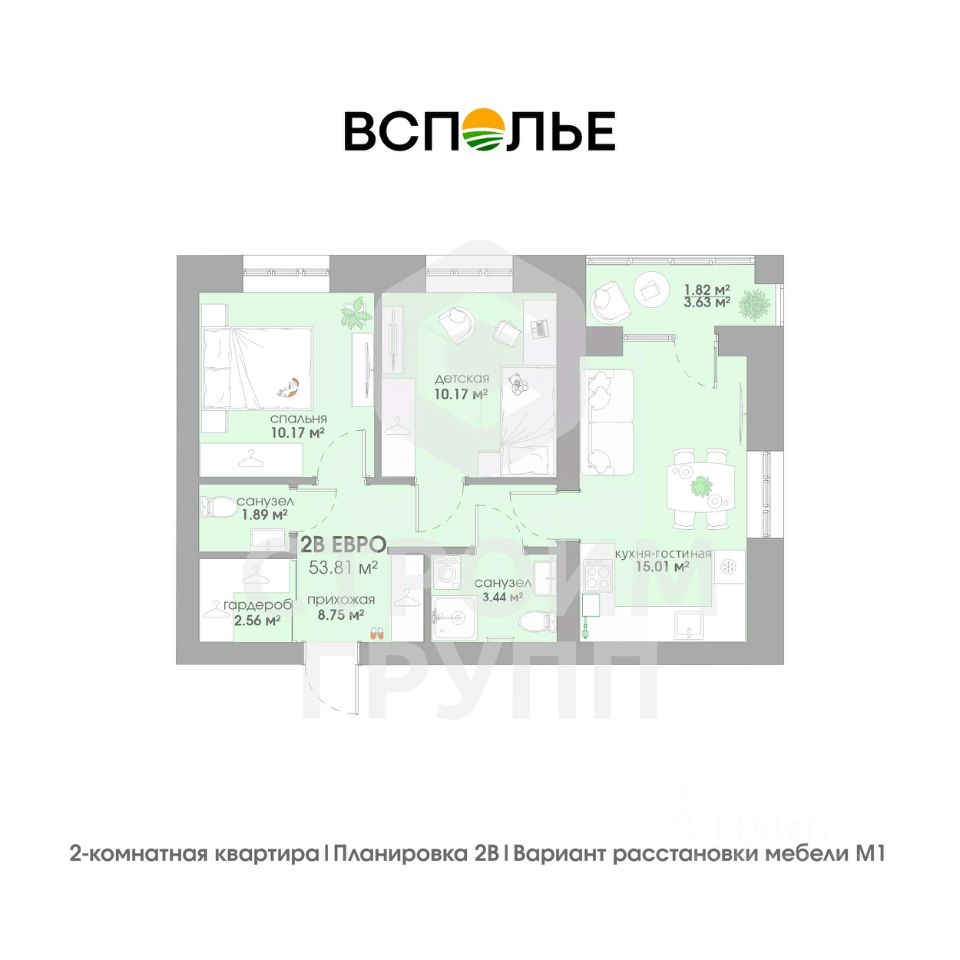 Общая площадь53,81 м²
