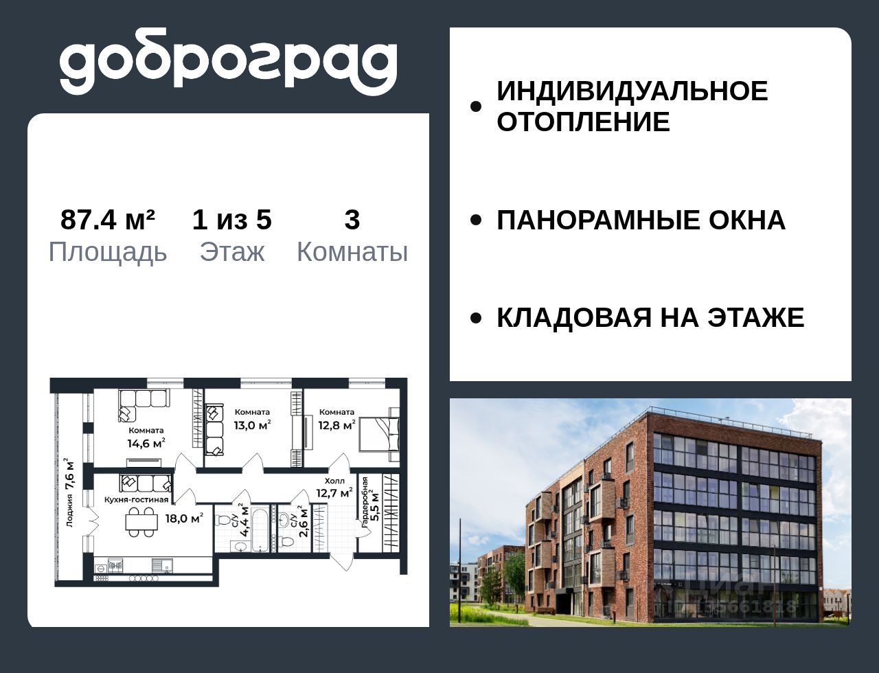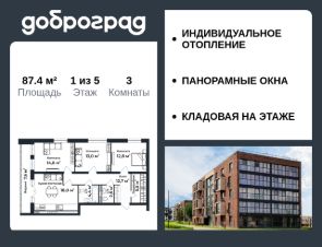 Продается 3-к квартира 87.40 кв.м. в новом построенном доме по адресу: Владимирская область, Доброград, улица Долголетия, д.3, корп. 1.