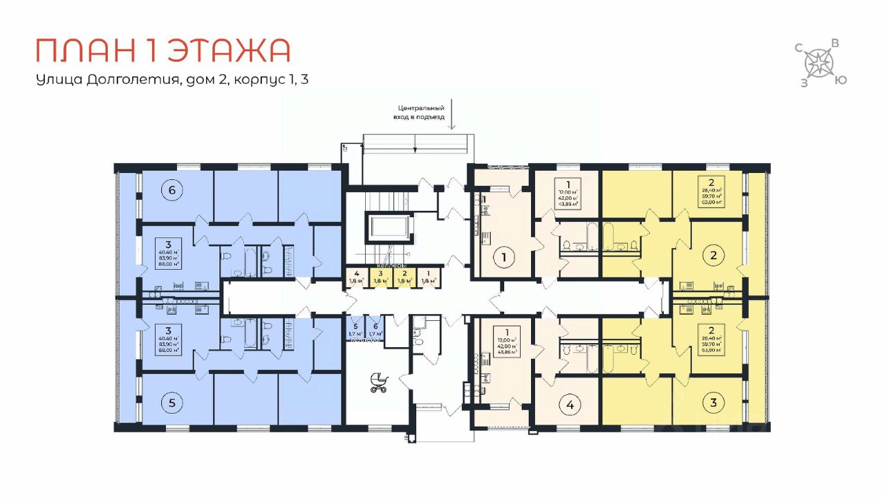 Квартира находится на 1 этаже 5-этажного дома. На лестничной площадке предусмотрена собственная КЛАДОВАЯ (келлер) для хранения вещей. В доме есть ЛИФТ, сквозной подъезд с просторной входной группой, большая колясочная.Функциональная планировка, большая кухня-гостиная, эффектная лоджия с ПАНОРАМНЫМ ОСТЕКЛЕНИЕМ, гардеробная помогут грамотно организовать пространство.