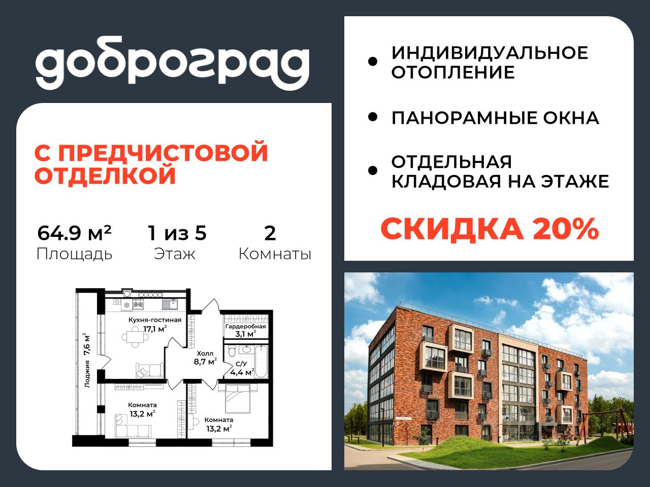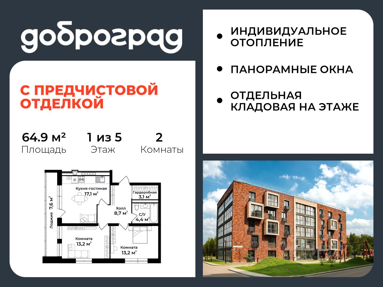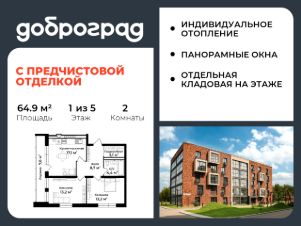 Продается 2-к квартира 64.90 кв.м. С ПРЕДЧИСТОВОЙ ОТДЕЛКОЙ в новом уже построенном доме по адресу: Владимирская область, Доброград, улица Удачная, д.7 корп.3.