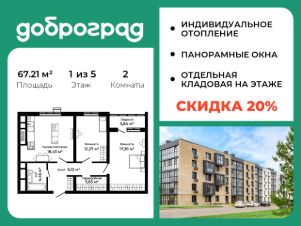 Продается 2-к квартира 67.21 кв.м. в новом построенном доме по адресу: Владимирская область, Доброград, улица Благополучия, д.2 корп.2.