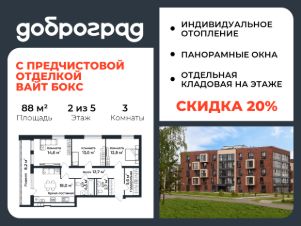 Продается 3-к квартира 88 кв.м. С ПРЕДЧИСТОВОЙ ОТДЕЛКОЙ в новом построенном доме по адресу: Владимирская область, Доброград, улица Долголетия, д.2, корп. 1.